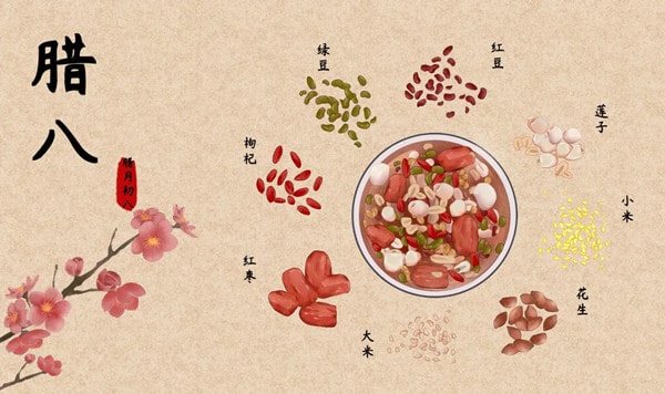 师:小朋友,你们记得农历十二月初八是什么节日吗?每年的腊月初八这一天,一家都要做什么呢?