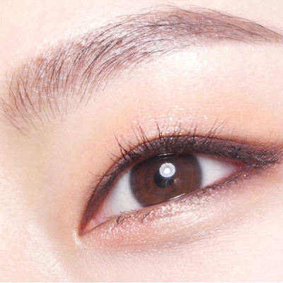 第三步:将周围眼影晕染干净,用一个棕色眼线膏贴着睫毛根部画一条眼尾微微向下的眼线,这样的眼神更加可爱温柔。