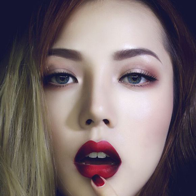 第四步:接着再用红棕色眼影填充下眼尾,米白色眼影打亮卧蚕,少女妆可以不贴假睫毛,如果睫毛比较稀疏的也可以贴上一款自然的假睫毛,之后刷上睫毛膏即可。