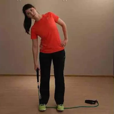 3、保持深呼吸,回到初始位置,换侧练习,交替练习10次。
