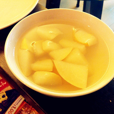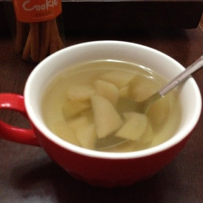 2、雪花梨洗净,去核切成大块,不用去皮,皮很有营养的;