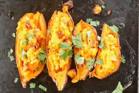 食用甘薯的方法是多种多样的,可直接将其烧煮吃,或制作成干点吃,甘薯粉则可溶解于牛奶或豆奶中饮服。