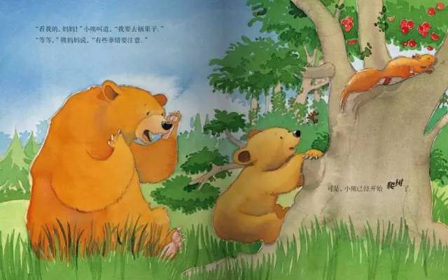 “看我的,妈妈!”小熊叫道,“我要去摘果子。”
