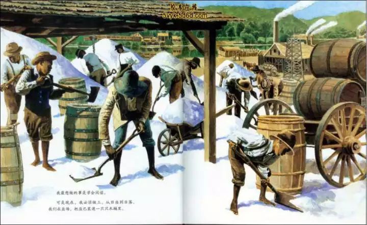 可是现在,我必须做工。从日出到日落,我们在盐场,把盐巴装进一只只木桶里。