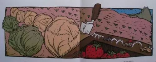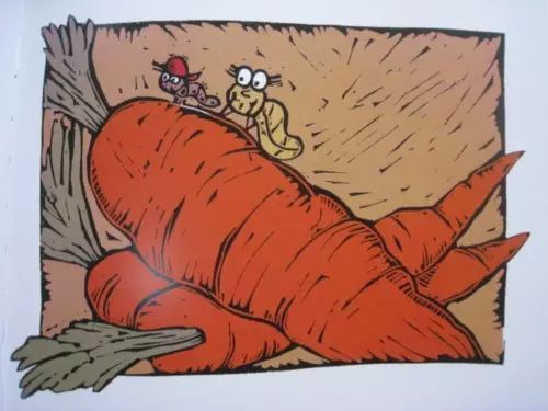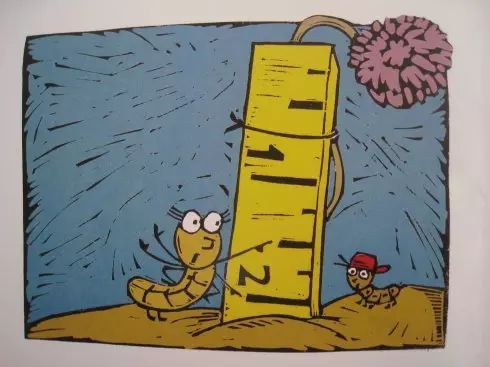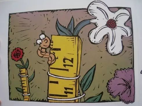 “扭来扭去的虫虫,一圈儿又一圈儿。什么都能测量,一环又一环。20厘米的生菜叶,25厘米的卷心菜,还有2又1/3厘米的红红小浆果。”
